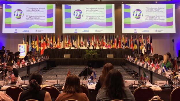 Del 7 al 11 de noviembre se desarrolló en Buenos Aires la XV «Conferencia Regional sobre la Mujer de América Latina y el Caribe». El Consenso de Buenos Aires, que resultó como declaración política del encuentro, enfatiza en el reconocimiento de los cuidados como derecho y trabajo, a la vez que incluye una perspectiva que propone revisar las deudas de los países para que se priorice la reducción de brechas de desigualdad que afectan a las poblaciones, especialmente a las mujeres en todas sus diversidades.